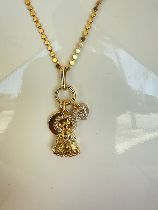 Short Necklace with Buddha, Heart & Moon CZ charm