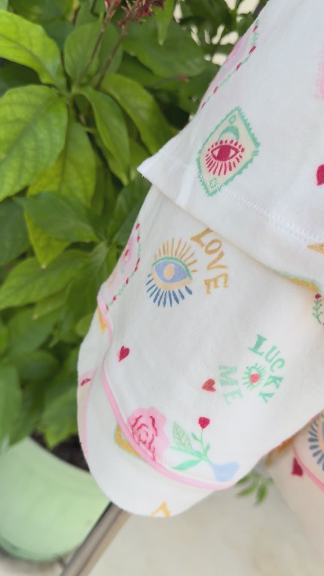 Slip into the Lucky Me flannel set and let comfort meet charm. This three-piece cozy trio—button-up shirt, relaxed shorts, and a matching headband—wraps you in ultra-soft cotton twill and a playful patchwork of pastel luck. From whimsical cards and eye talismans to radiant hearts and blooming florals, every piece invites a little magic into your lounge time. Perfect for relaxing or dreaming big, this set makes your downtime stylishly lucky.