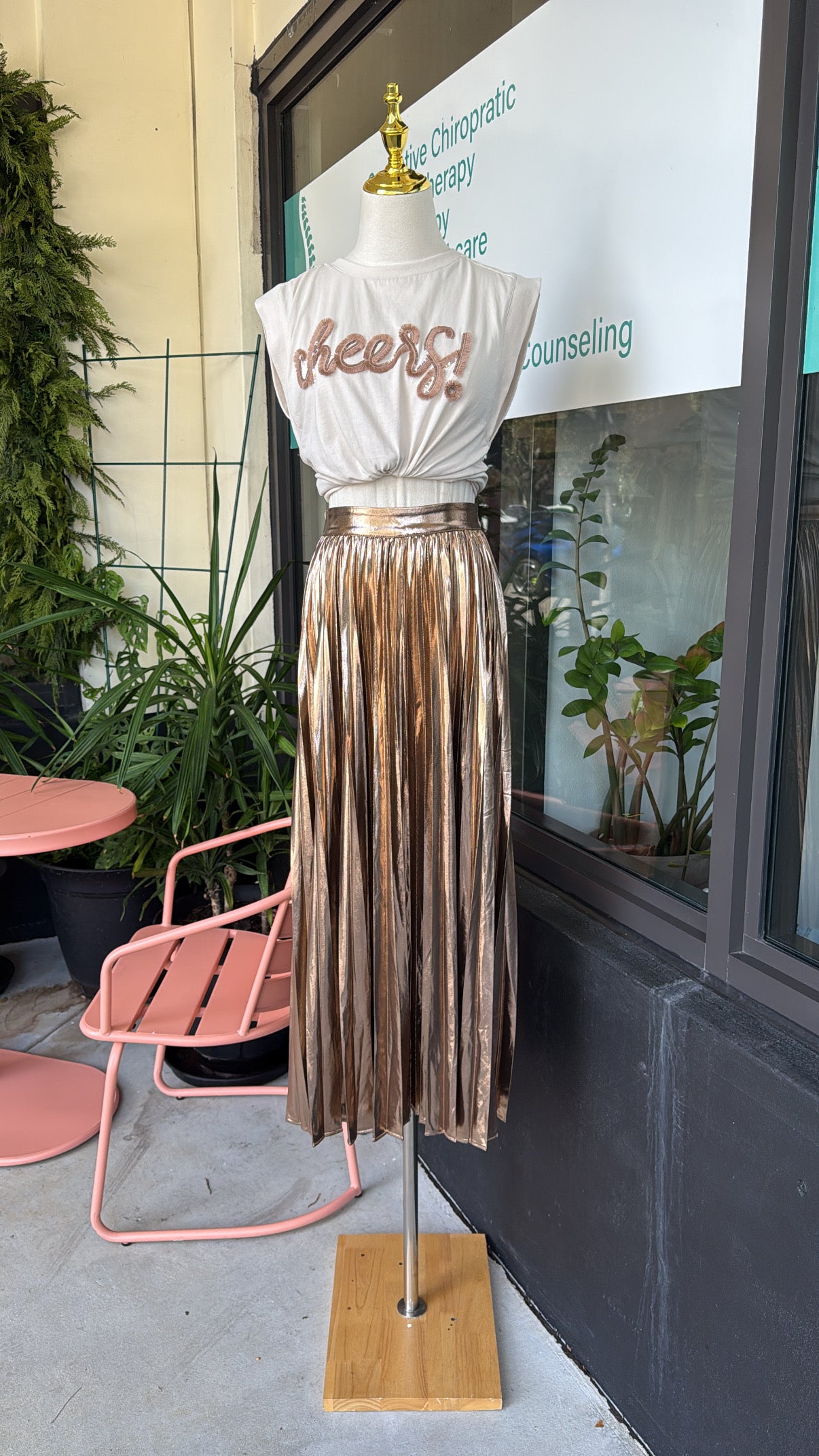 Raise a toast to style with this playful graphic shirt! Featuring the word "Cheers" emblazoned across the chest in shimmering sequined embroidery, it's the perfect pick for celebrations, casual outings, or whenever you want to spread good vibes. The short sleeves keep things breezy and comfortable, while the eye-catching embroidered design adds just the right amount of sparkle and personality to your everyday wardrobe.