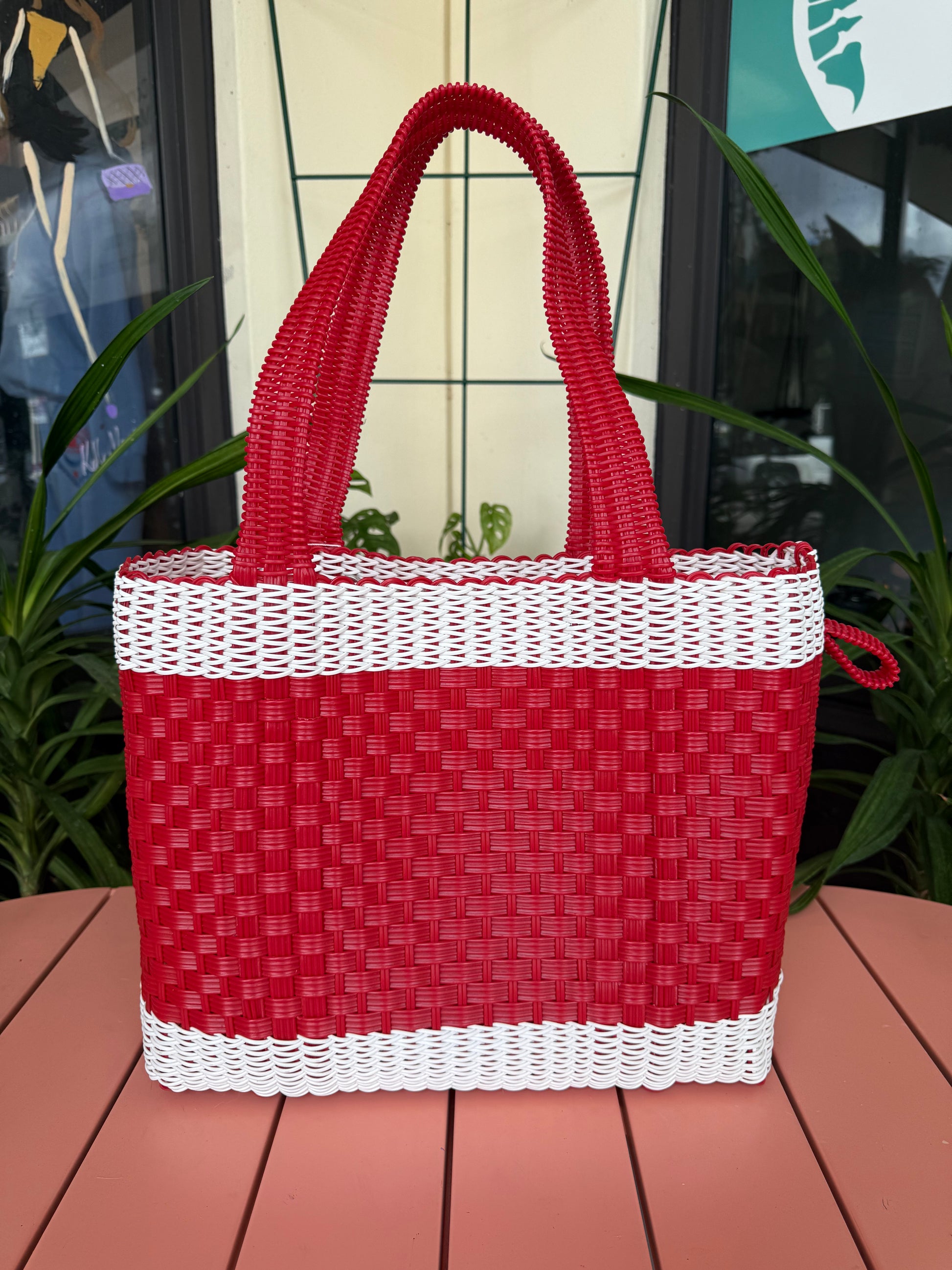 Hand Woven Totes. Colorful, with Small zipper woven plastic bag